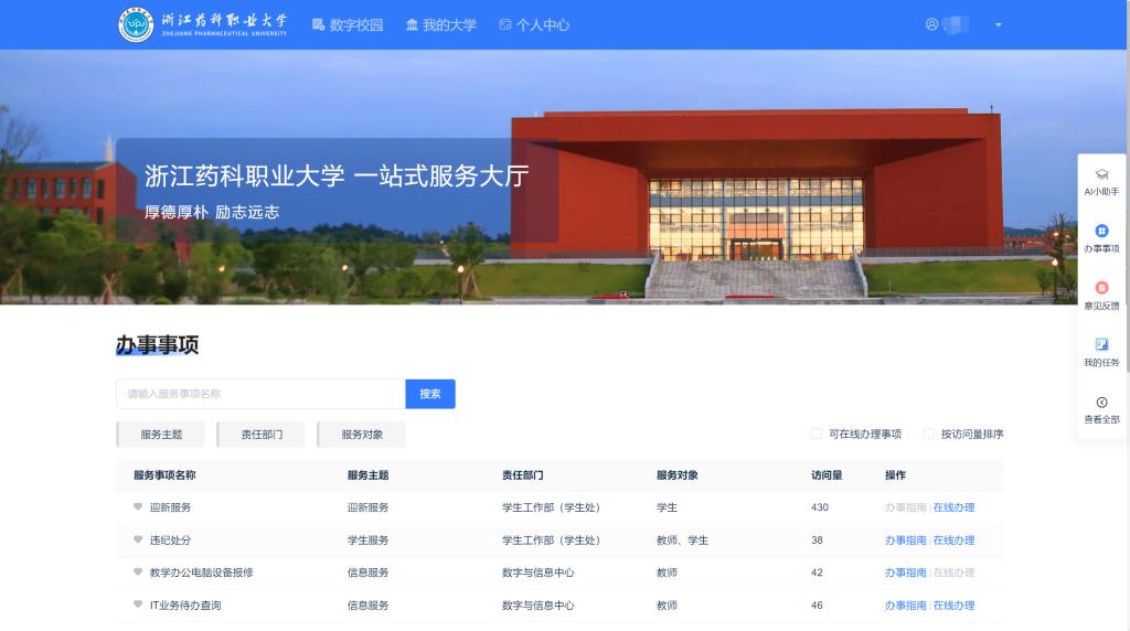 为保障新生畅行校园,助力校园安全治理与管理水平提升,迎新期间充分依托学校“数字浙药”平台建设与数据治理成果,全面推进“掌上办、网上办”服务模式。师生可一站式享受通行、消费、访客登记等校园生活场景服务;选课、请假、考勤、水电等日常管理事项也全面支持在线查询与办理,真正实现“数据多跑路,师生少跑腿”。