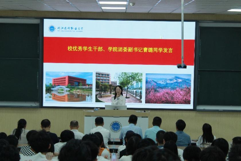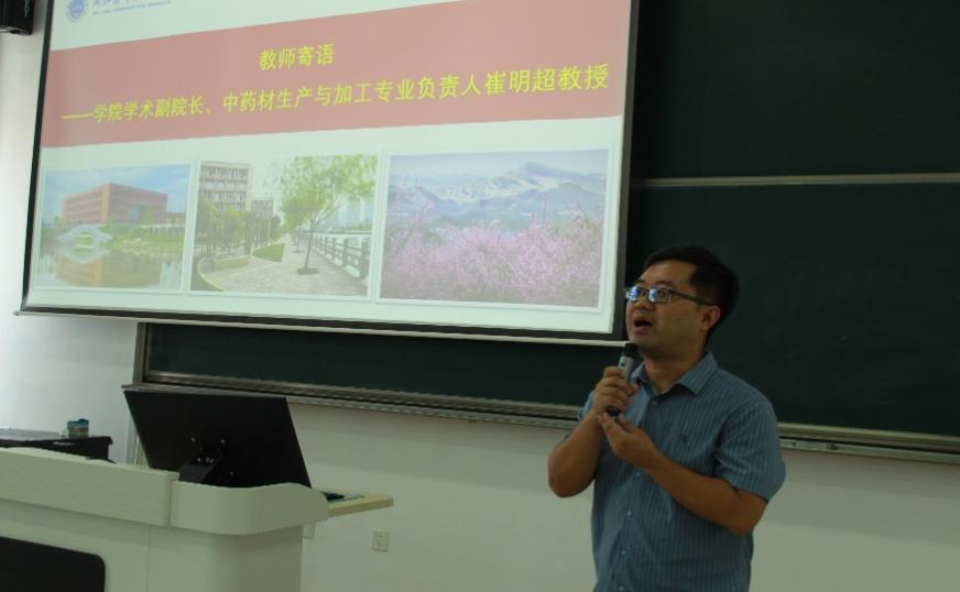 学院学术副院长崔明超以普通教师身份激励广大新同学志存高远、矢志奋斗,在强校、强院建设中砥砺奋进。而学院优秀学生干部、院团委副书记曹璐同学更是以自己二年多在浙药大青春奋斗的故事,倡导新同学们做最美浙药人、最强中药人。