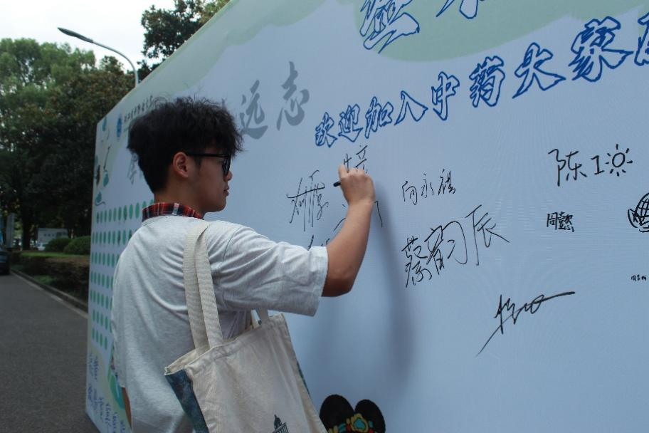图1:小朱同学在学院新生签名墙上留下了自己进入浙药大的第一个姓名
