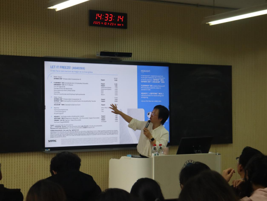随后,讲座进入核心技术环节。孙总监系统阐释了Seppic先进的乳化技术平台,并重点剖析了液晶乳化剂的突破性优势。她指出,该类乳化剂不仅能提供更稳定的体系与独特的肤感,更契合当前市场对安全、合规与环保的迫切需求,是实现高性能与可持续性兼备配方的重要解决方案。讲解过程中,孙总监结合产品创造的实际案例,将复杂的机理深入浅出地呈现给听众。