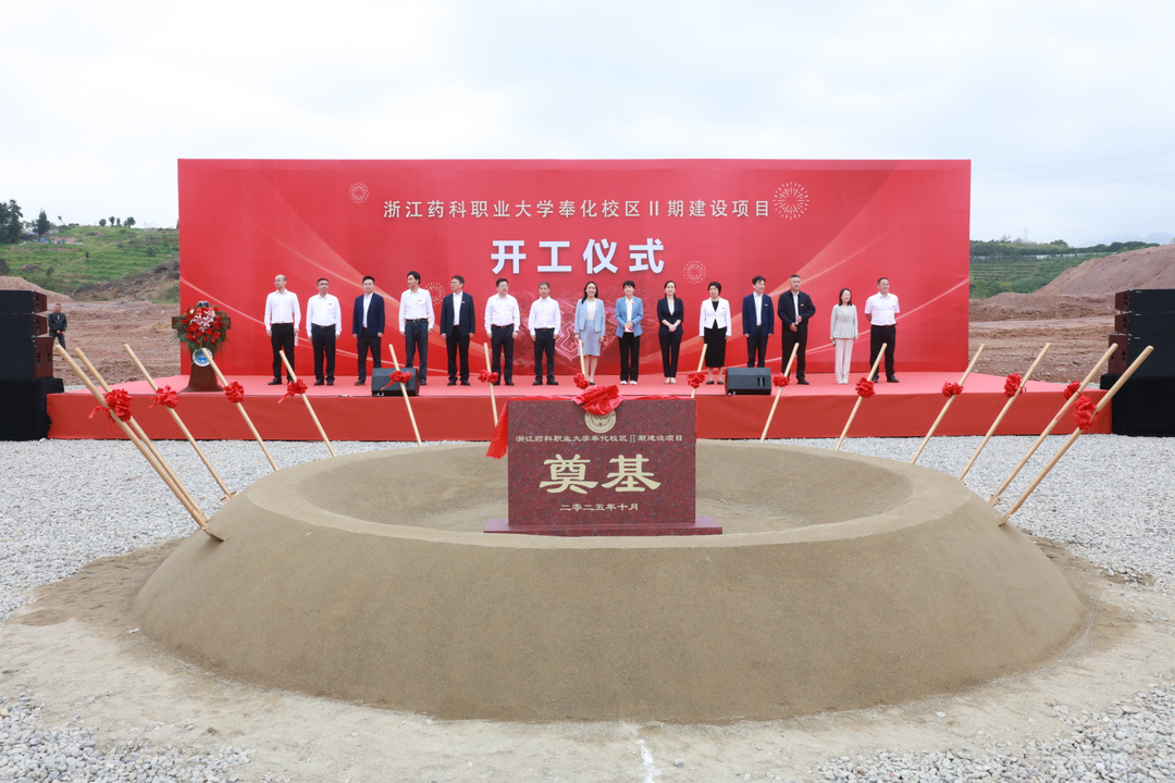 10月20日上午,浙江药科职业大学奉化校区Ⅱ期建设项目开工奠基仪式在奉化校区举行。