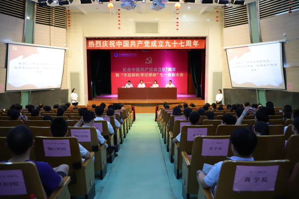 6月29日下午,学校在学生活动中心报告厅纪念中国共产党成立97周年暨“不忘初心 牢记使命”七一表彰大会。校党委书记陈厥祥、校党委副书记、校长任文霞、校党委副书记杨俊杰、党委委员、宣传部长万松钱出席会议,全体党员参加会议。会议由任文霞主持。