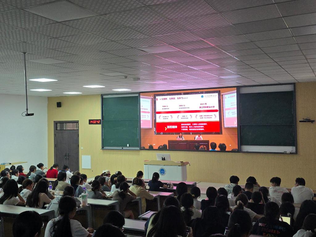 “浙药大是一所有情怀、有梦想、有担当的大学,全体浙药人勠力同心,勇攀高峰,助力学校实现了三次历史性的跨越;浙药大是一所积极践行总书记嘱托,奋进有为的大学,时任浙江省委书记习近平同志提出‘抢抓机遇、加快发展,办出水平、办出特色’的殷切期望,全体浙药人牢记嘱托、接续奋斗,向总书记交上了一份高质量发展的厚重答卷;浙药大是一所医药特色鲜明,办学质量走在前列的大学,学校紧密对接浙江省‘415X’先进制造业集群和宁波‘361’万千亿级产业集群发展,围绕‘浙产好药’‘浙造器械’等产业布局,构建覆盖康养领域和药品全产业链的大健康专业体系;浙药大是一所扎根医药行业办学,深受社会企业青睐的大学,学校与全省600多家医药企业形成了协同育人、合作研发、共享资源的良好机制,被业界誉为医药行业的‘黄埔军校’,每年就业质量优异,社会认可度高。”阮叶萍向新同学们介绍浙药大时如数家珍。