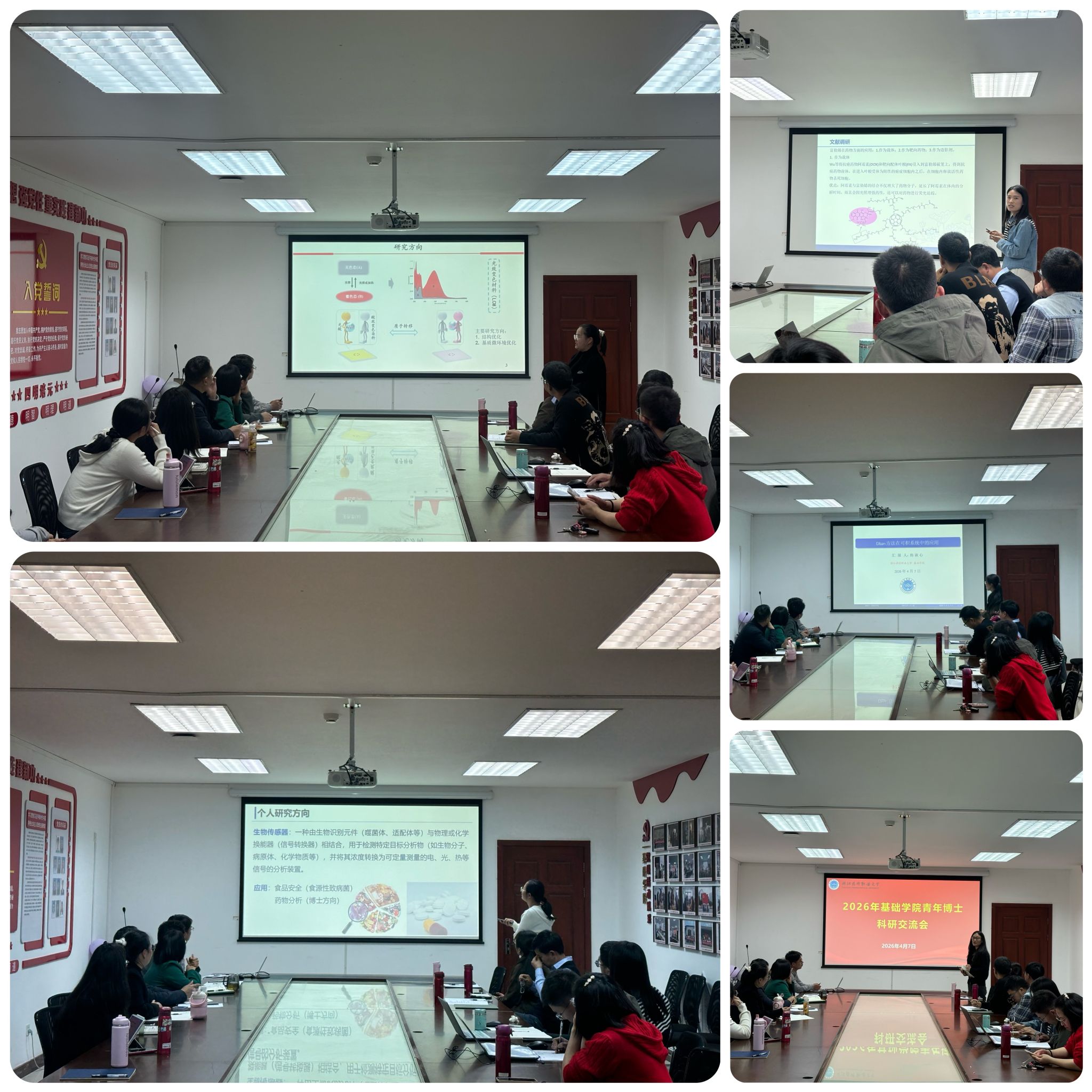 各位青年博士还坦诚分享了科研过程中的难点与思考,交流了课题申报经验,围绕平台建设、设备使用、跨学科合作等问题展开深入探讨。现场交流氛围热烈,思想碰撞充分,既展现了青年博士扎实的学术功底与积极的科研态度,也为后续协同创新奠定了良好基础。