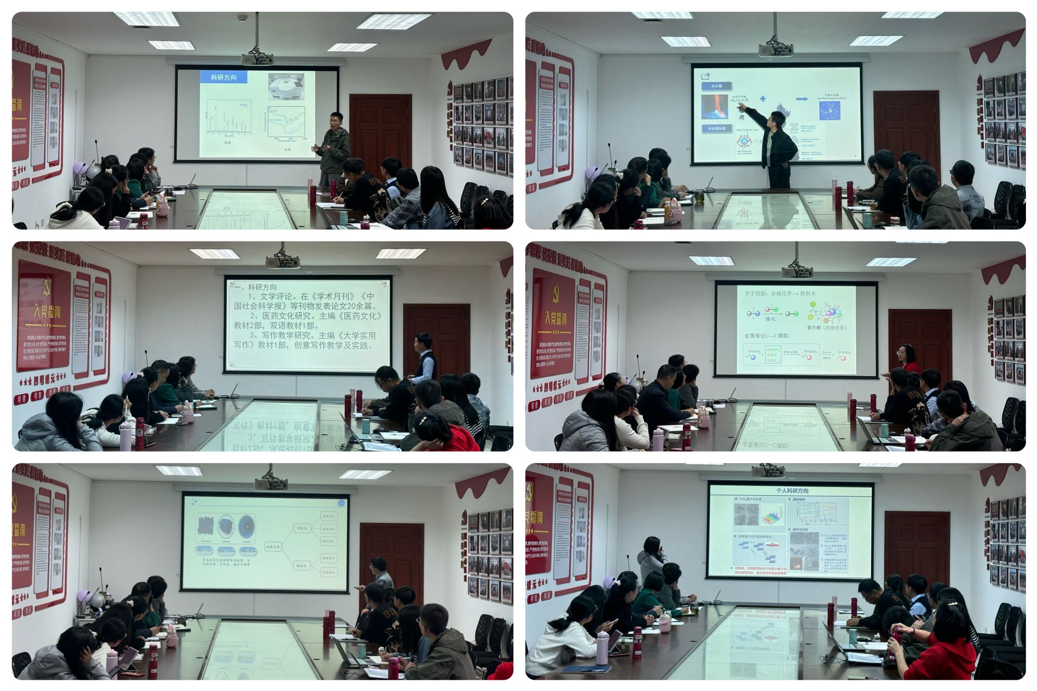 交流会上,青年博士们依次登台,结合自身研究领域,系统汇报了当前研究内容、方向背景、现有成果及项目申报计划。中文教研室谢文兴博士聚焦文学评论、医药文化研究与新大众文艺探索,深入剖析浙江本土作家创作特色与网络文学发展趋势,展现出人文社科研究的时代价值;数理教研室杨淑心博士以非线性方程、可逆系统优化为核心,分享理论算法创新与应用研究进展,彰显基础数学研究的深度与广度;化学教研室青年博士们主要围绕新能源材料、碳材料应用、生物传感器、光致变色材料等方向,详细介绍实验研究、技术攻关与成果转化,多项研究与医药、食品、环境等领域高度契合,凸显应用化学的实践意义。