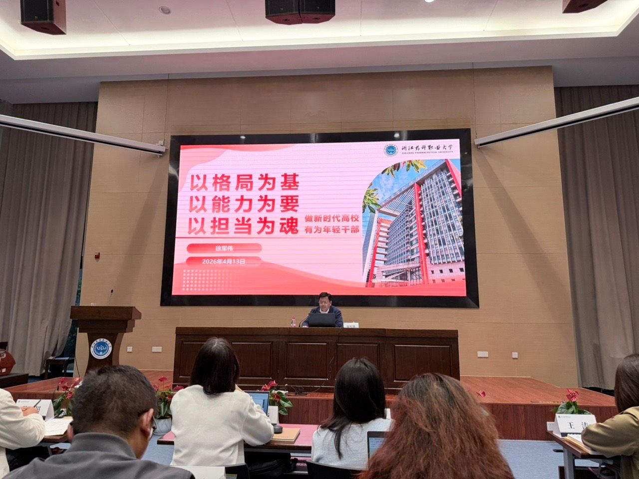 徐军伟结合自身多年高校管理经验与多岗位历练经历,围绕格局、能力、担当三个维度进行了讲解。他指出,年轻干部要提升格局境界,做到高站位、宽视野、大胸怀,立足教育强国战略与学校职本建设目标,树立全局思维,主动对接产业需求、适应教育数字化转型,以包容之心凝聚干事合力;要锤炼过硬能力,重点提升战略执行、沟通协调、专业引领、风险防控四大本领,持续在学历、经历、阅历、研力上积累提升,成为高校治理行家里手;要强化使命担当,做到敢于负责、善于攻坚、主动作为,在职业本科合格评估、校区建设、产教融合、学科优化等重点任务中勇挑重担、实干争先。