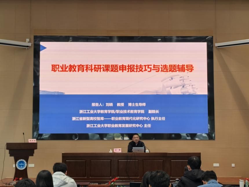 上午10:30,专题讲座在奉化校区行政楼111会议室举行,各学院分管科研副院长、科研主管、科研骨干教师及学生代表参会聆听。刘晓教授围绕“职业教育的科学研究与课题申报”主题,结合自身深厚的学术积累与丰富的评审经验,系统讲解了职业教育研究的开展方法,拆解了人文社科类项目申报的核心策略,重点阐释了选题策略、研究方案、论证策略等关键要点,为参会师生搭建了清晰的科研申报思路框架。