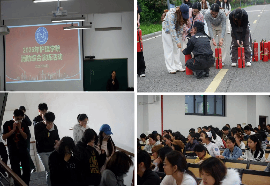 为筑牢校园安全屏障,切实提升全院师生消防安全意识与应急自救能力,4月13日中午,护理学院联合校安全保卫部,在奉化校区1#实验楼及学校操场西侧成功举办了2026年度师生消防安全综合演练。学院师生代表200余人参与了本次活动,校安全保卫部全程提供专业指导。