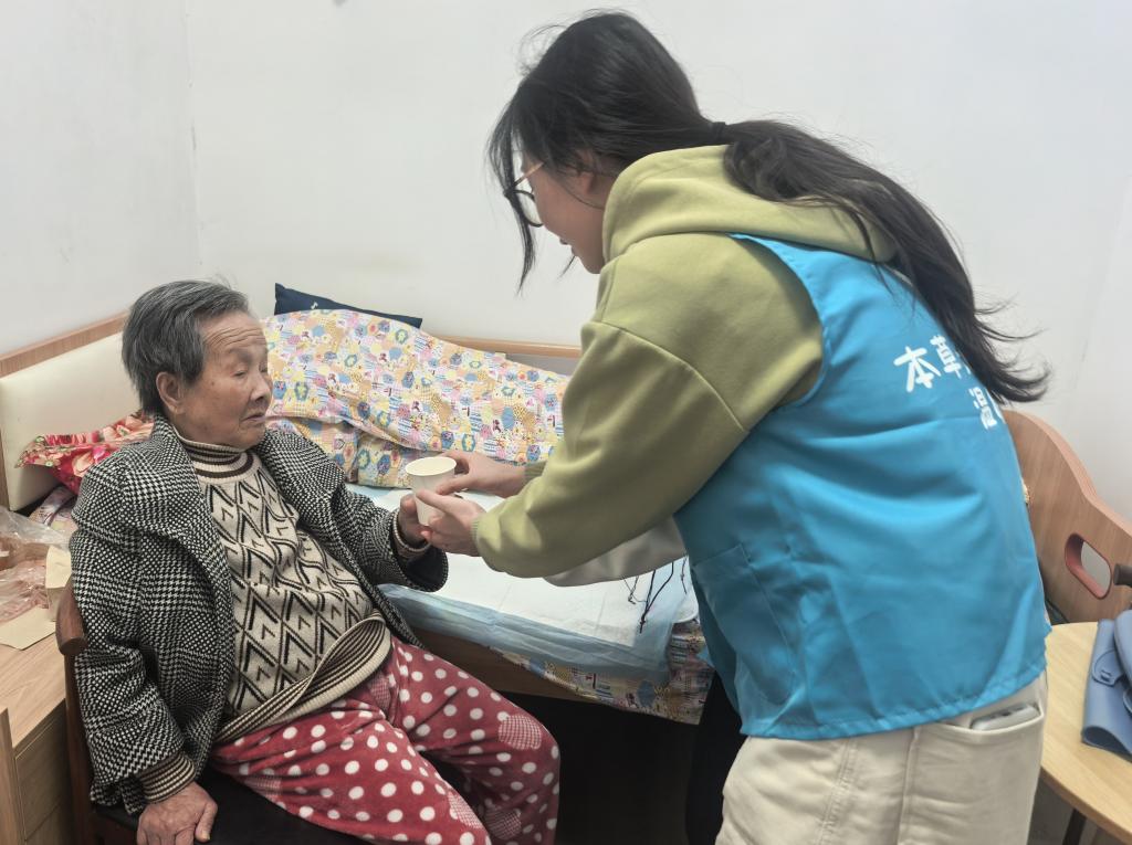 志愿服务活动紧扣老年群体健康需求,将中医药济世为民的专业文化优势与健康养老服务理念深度融合:把脉问诊解病痛、血压监测守健康、耳穴治疗疏经络,用专业诊疗筑牢“健康奉化”防线;秋冬养生知识科普、中药材鉴别指导,以健康养身实用技能传授提升老人健康保健意识;中药文创传暖意、养生茶饮润心田,让传统中医药文化浸润生活。这一系列举措不仅是节日关怀,更是学院党委推动专业力量下沉基层、助力完善“老有颐养”社会保障体系的具体实践,生动诠释了学院党组织“把为民服务落到实处”的责任担当。