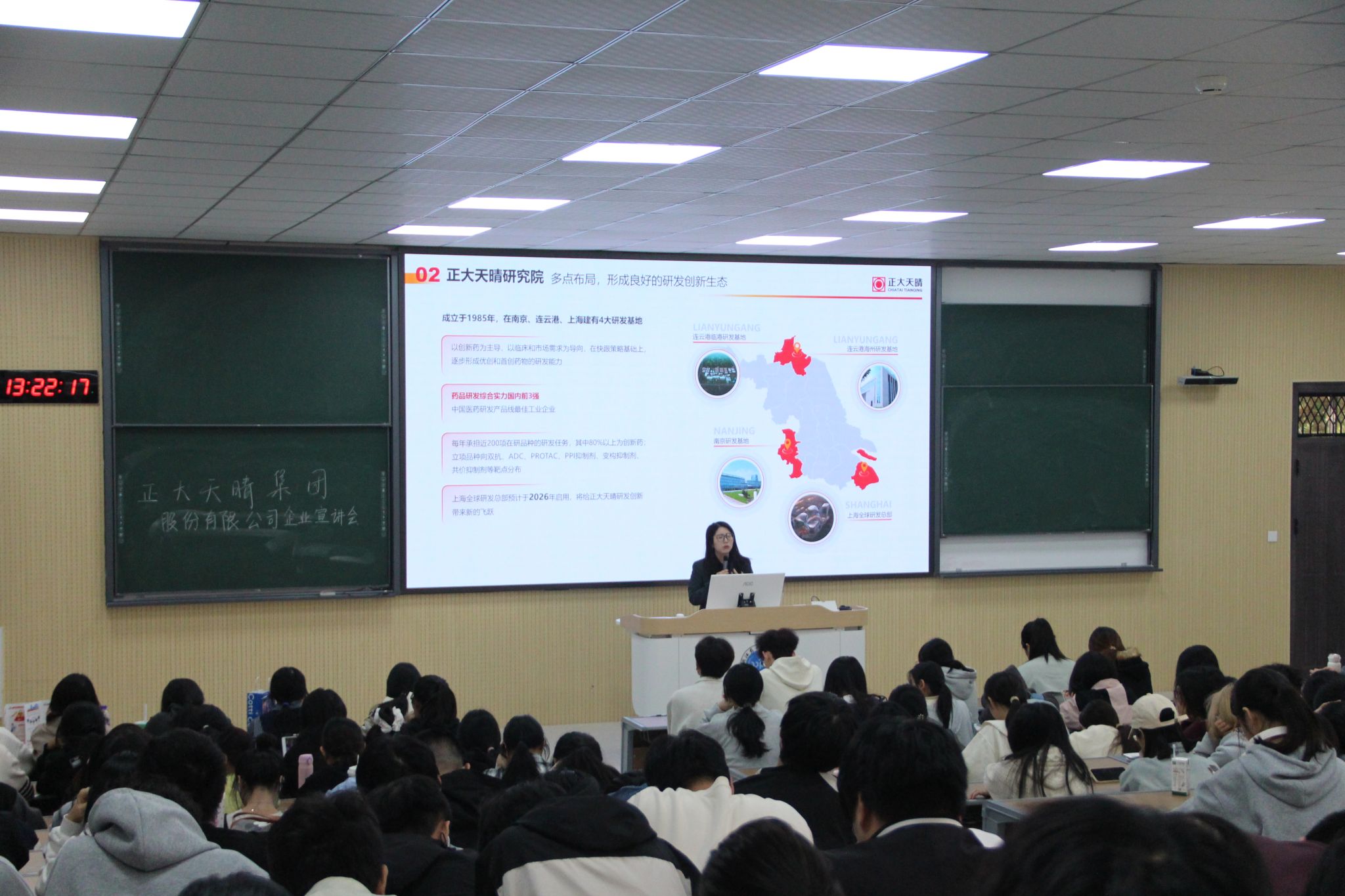 13:00,正大天晴药业集团股份有限公司率先开讲。作为全球医药创新百强企业,正大天晴围绕“创新药研发与国际化布局”主题,系统介绍集团核心管线及“天晴菁英”人才计划,面向药学相关、市场营销等专业发布营销、合规、商务等多个专业岗位。
