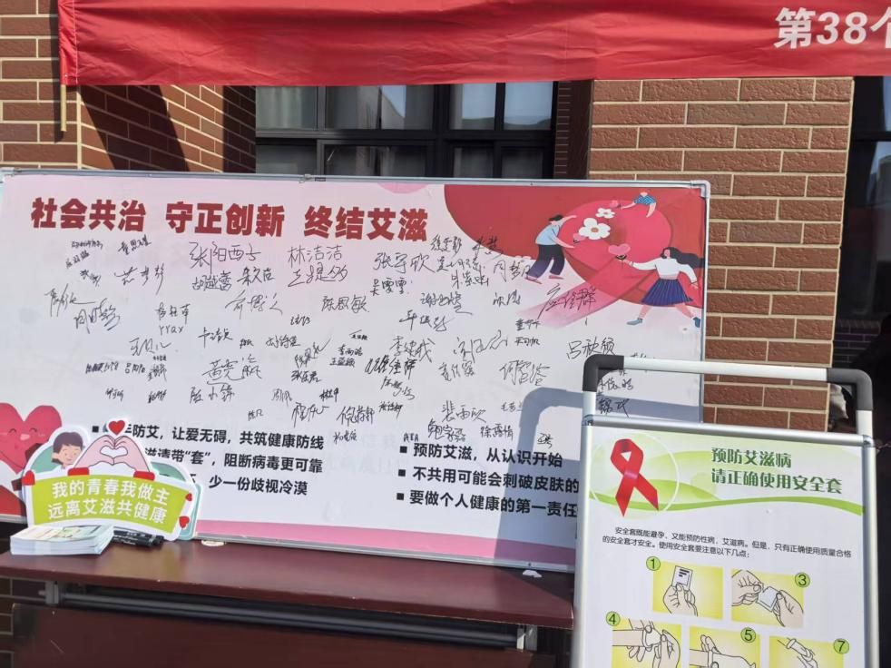 活动现场氛围热烈有序,一场集知识普及与实操体验于一体的健康盛宴在此展开。学校精心搭建立体化宣传空间,设置艾滋病抗体检测处、科普展板长廊、主题签名打卡墙等多个功能区域,工作人员与志愿者向过往师生发放防艾宣传手册及实用宣传品,让健康防护理念触手可及。其中,图文并茂的科普展板成为师生驻足学习的焦点,从艾滋病的传播途径、科学预防方法,到安全套的正确使用流程,再到国家艾滋病防治相关政策,内容详实全面,有效引导师生打破认知误区,消除对艾滋病的恐慌与偏见,建立科学的疾病认知。