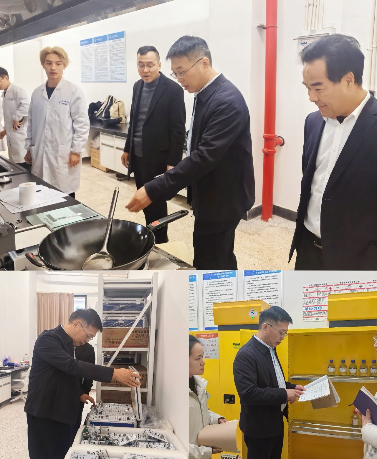 为深入排查实验室安全隐患,切实保障师生生命财产安全,12月1日至12月2日,副校长沈忠华带队,在学校两校区召开2025年年度实验室安全工作现场会议,对全校实验室进行安全专项检查。各学院院长、分管实验室安全负责人、实验室主管及技术技能中心相关人员全程参与检查工作。