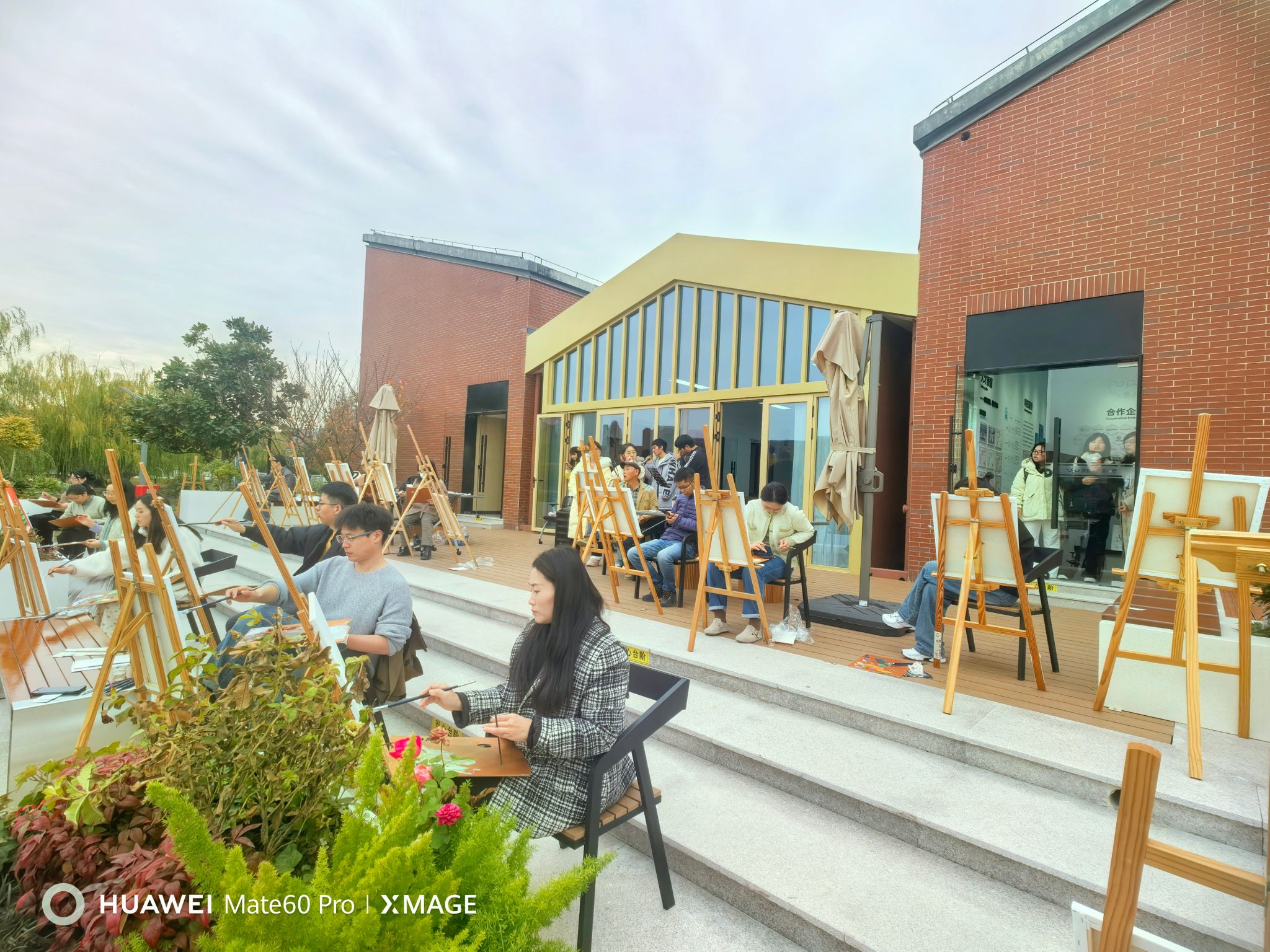 活动现场,油画名师张丹阳带来油画基础技法讲解与示范,从调色技巧到笔触运用,为零基础参与者扫清创作障碍。随后,教职工们以“校园风光”“奉化印象”“心中梦想”为创作方向自由创作,在画布上勾勒校园建筑的轮廓、晕染奉化山水的色彩,其间还穿插作品交流与合影留念环节。值得一提的是,活动配套的小型音乐会同步开展,师生互动歌吟的旋律为创作增添了艺术氛围,让参与者专注于艺术表达。