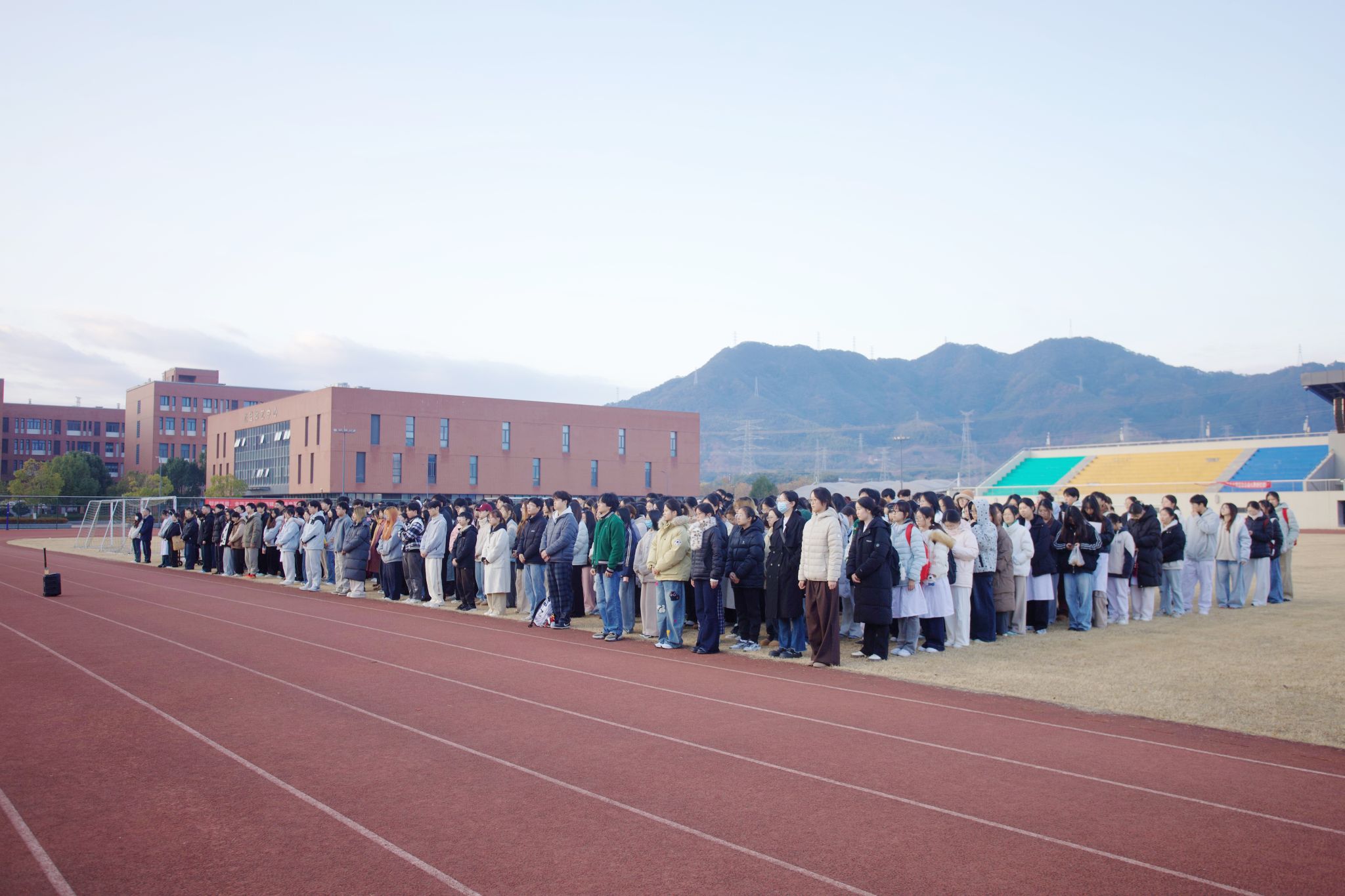 2025年12月10日早上7时,浙江药科职业大学护理学院于奉化校区操场举行“冬暖校园,安全同行”主题升旗仪式暨冬季校园安全教育主题大会。护理学院党总支书记陈枫老师、学院团委书记张文洁老师、A23护理专业辅导员顾雨涵老师出席活动,学院A23、A24级学生全体参与。