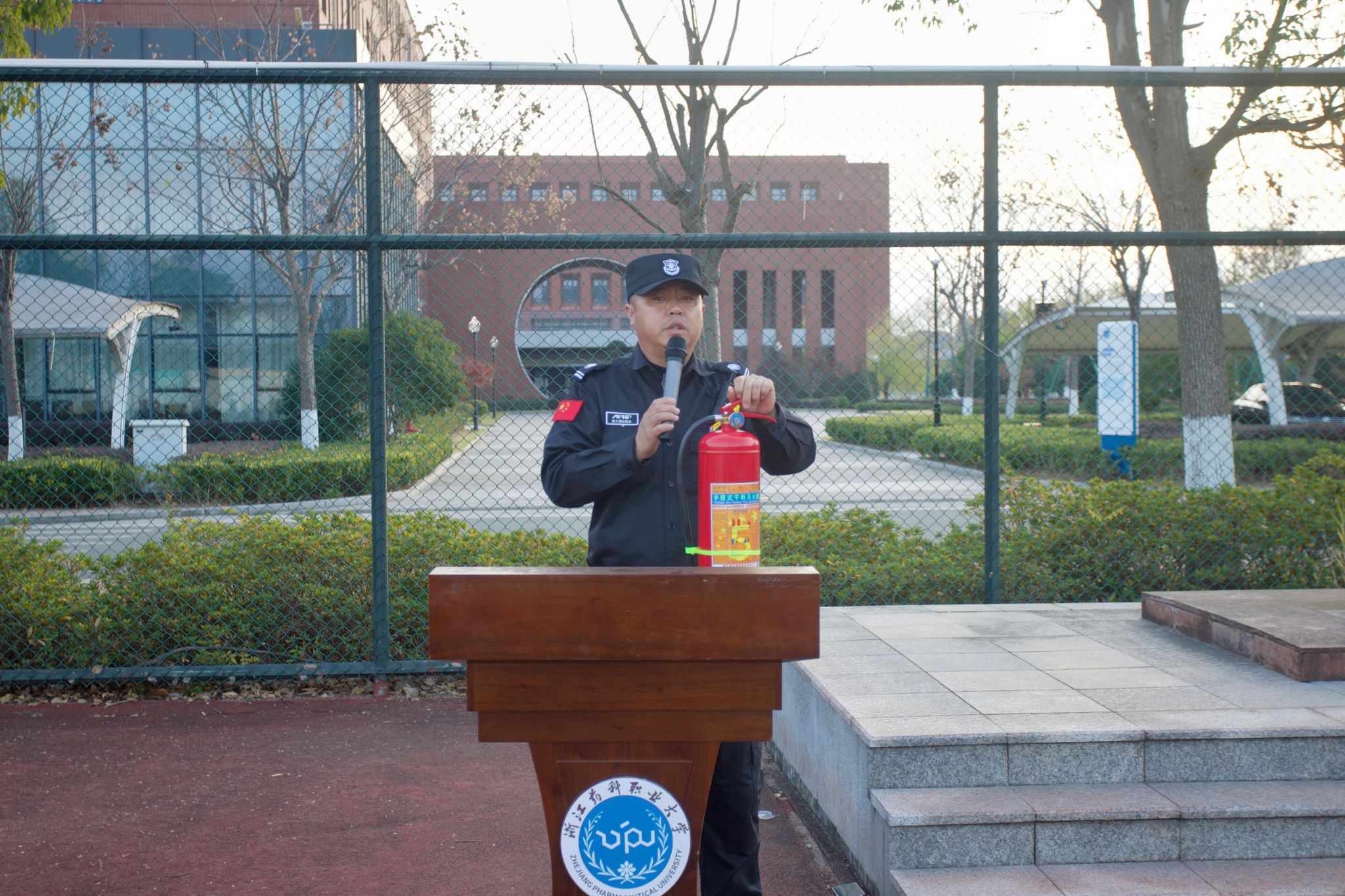为提升师生消防安全实操能力,学院安排了灭火器材使用演示环节。校安全保卫处专业人员现场讲解了灭火器的性能、适用场景及操作步骤,并进行了规范演示,强调了初期火灾扑救的注意事项以及消防按钮的相关知识。