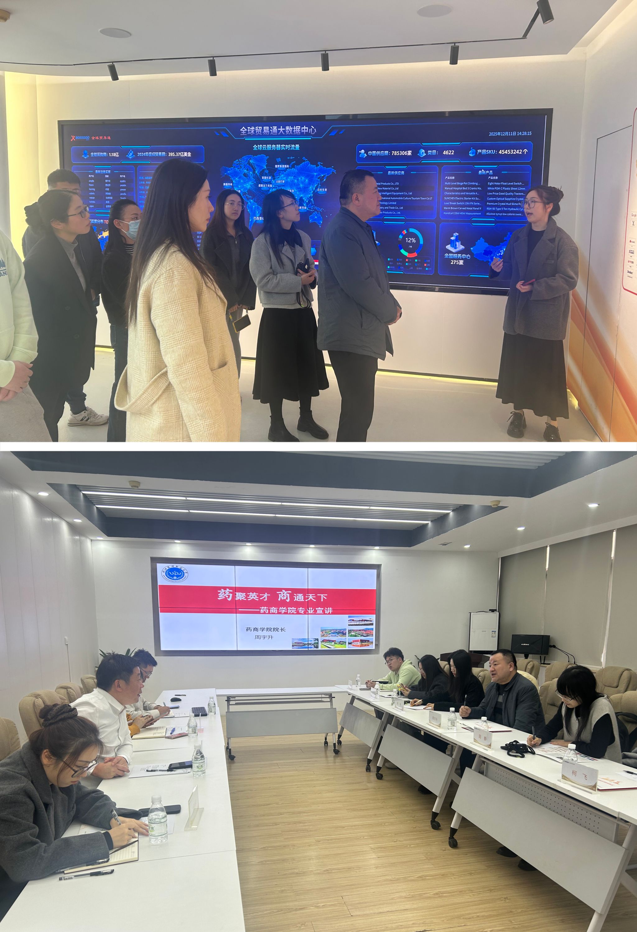 为进一步加强药商学院与当地行业协会和优质跨境电商企业合作,精准对接区域贸易企业人才需求。12月11日下午,药商学院院长周宇升、学术副院长周静、应用英语专业负责人柯飞以及相关专业骨干教师,联合宁波市海曙区跨境电子商务协会秘书长陈玮等赴中国电子商务50强外贸平台企业全球贸易通集团,与企业董事长陈建旭、培训总监郭文以及相关部门负责人等进行了深入的合作交流。