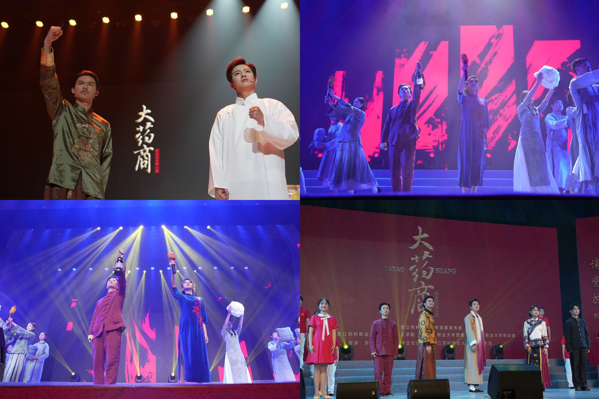 “优秀的校园原创戏剧是思政育人的鲜活载体,更是美育品牌建设的核心抓手。《大药商》的‘大’,体现在其承载的抗日救国民族大义之‘大’。我们希望通过艺术演绎,让项松茂先生等先辈们的家国情怀被永远铭记,让红色基因与民族气节在青年一代心中深深扎根。”党委宣传部相关负责人表示。《大药商》立足学校医药特色,深挖宁波地域文化底蕴与红色抗日基因,既是学校“新时代真理的味道·四习鸣理”大思政课品牌的重要成果,也是“健康药美”美育品牌的生动实践。200余名学子跨药学、护理、营销、医疗器械等多个专业,全流程参与戏剧打磨、角色演绎、舞台搭建、服化设计等工作,在实践中锤炼专业素养、厚植家国情怀,正是学校“文化育人+专业塑魂”育人模式的生动写照。“从一剧构思到舞台绽放,每一个角色的打磨、每一幕场景的搭建,都凝聚着浙药学子的热忱与汗水。”该剧编剧、导演,浙药大艺术教师侯丽娜感慨道。创作过程中,学生们跨专业组队,在舞台上用真挚的表演诠释“医药为民”的初心与“抗敌不屈”的气节,这不仅是一部戏剧的诞生,更是一场“大思政”与“大美育”的生动实践。