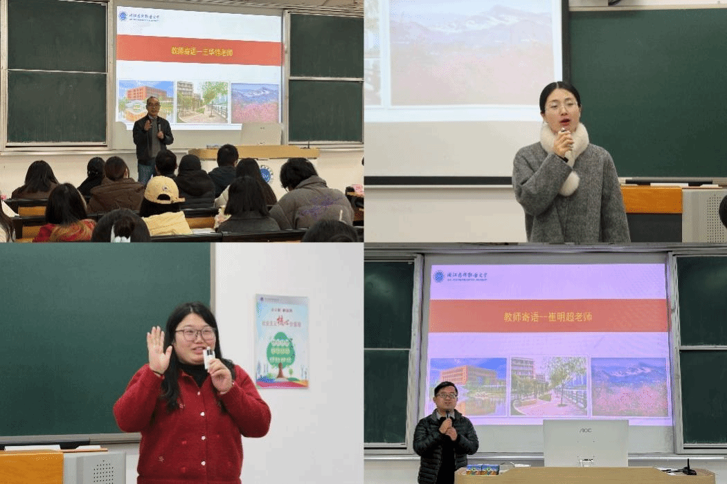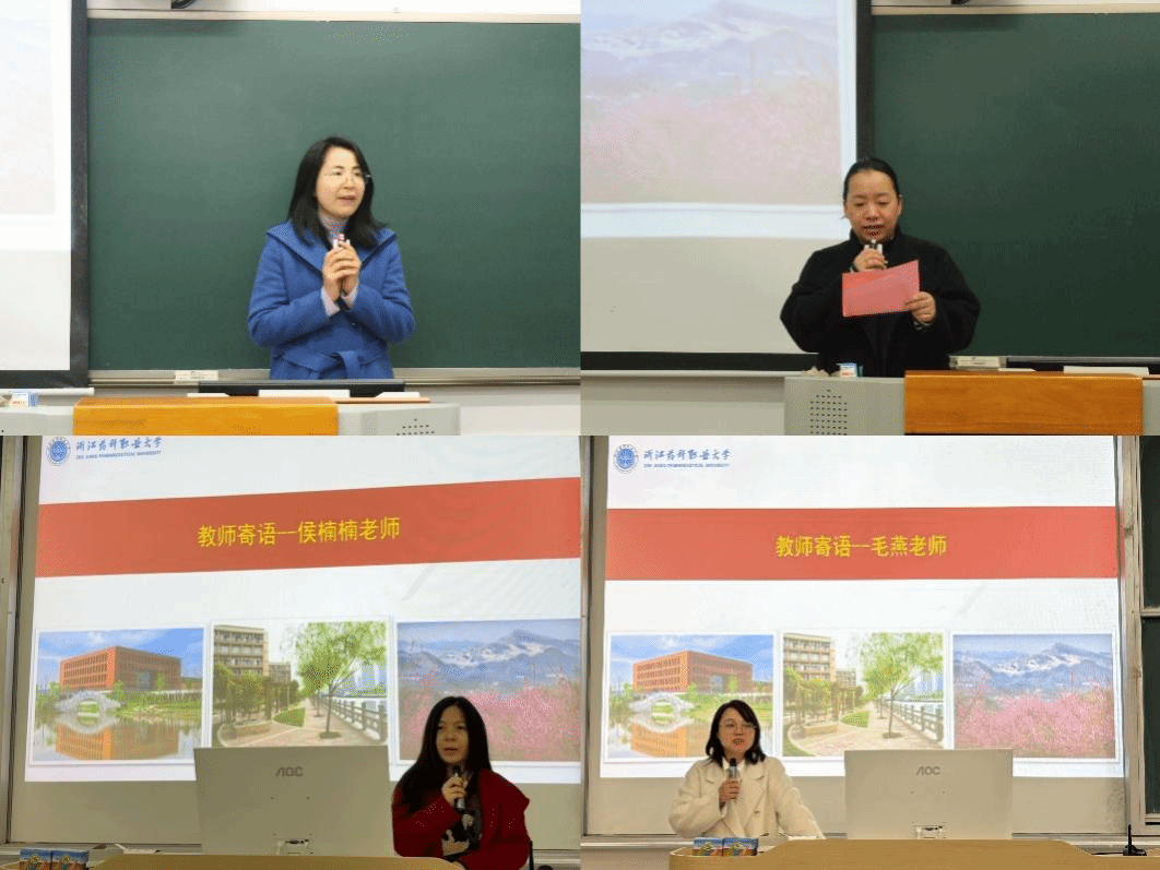 图4:辅导员朱春梅、吕君、毛燕、侯楠楠等在会上寄语广大同学