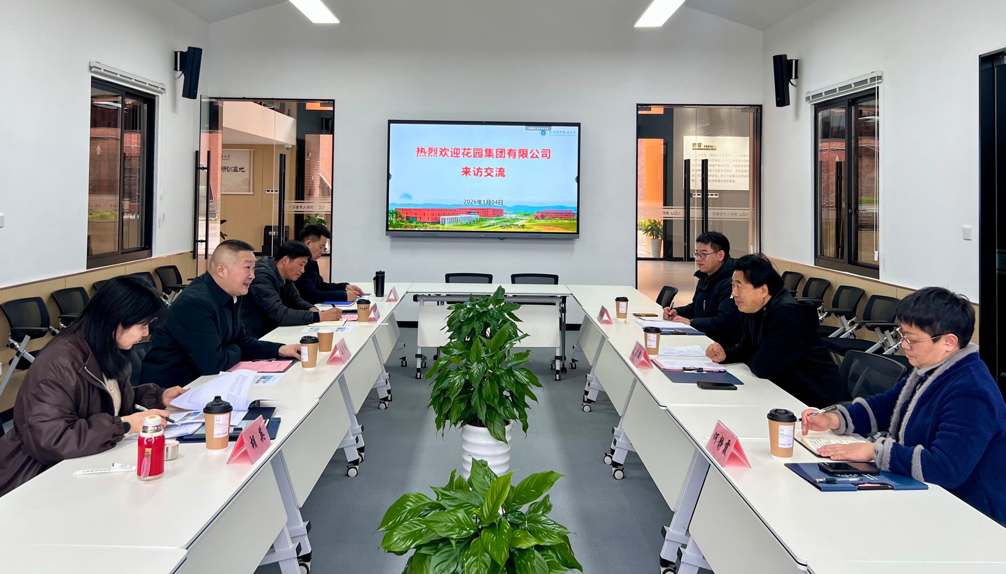 1月4日下午,花园集团有限公司常务副总裁陈立毅、东阳市花园高级中学书记、校长何静霞一行莅临我校考察交流。学校党委委员、副校长姜宇国,教务处、产教融合与社会合作处、药学院等相关负责人出席座谈,双方围绕共建村域医药健康服务平台与人才培养机制展开深入交流。