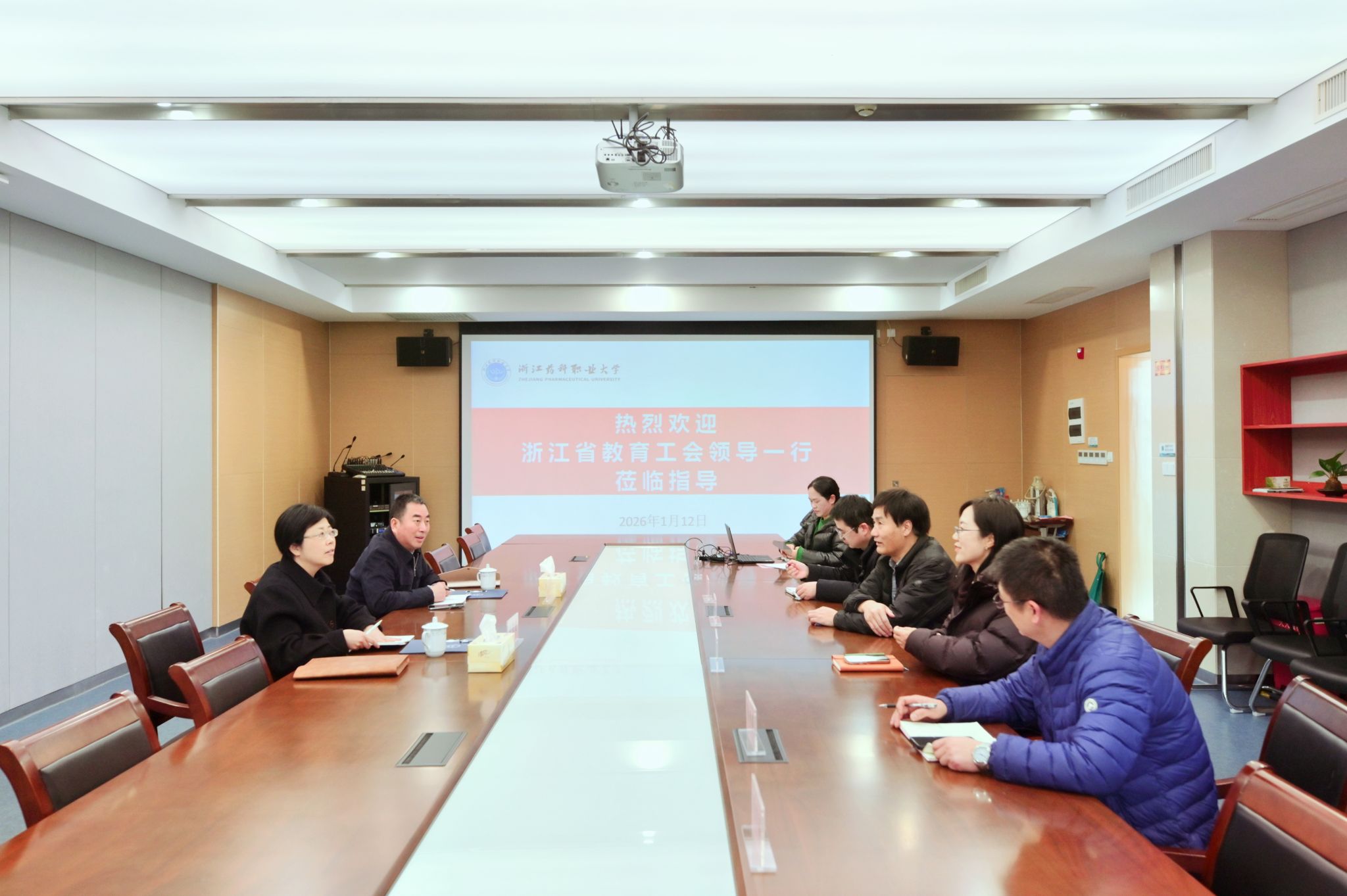 2026年1月12日下午,省教育工会副主席胡慧霞、调研员王泽杰一行莅临我校调研指导。学校党委副书记、工会主席韩忠培及工会专职副主席王雪芳、副主席朱增晖、钱旭武等陪同。