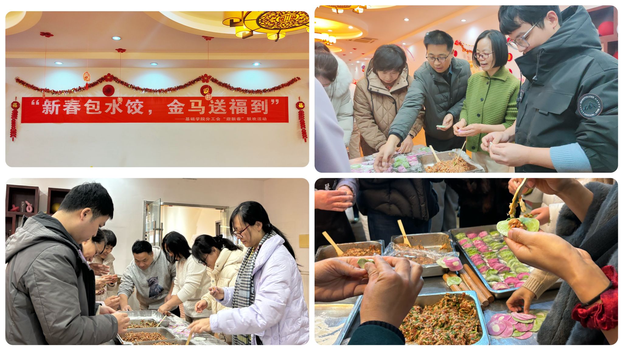 岁序更替,金马迎瑞。在2026年马年新春佳节即将来临之际,为弘扬中华优秀传统民俗文化,丰富教职工精神文化生活,进一步凝聚团队力量,基础学院分工会精心策划并组织了“水饺聚暖意,聚力启新程”迎新春主题活动。全体教职工欢聚一堂,在欢声笑语中体验手工包水饺的乐趣,共话新春愿景。