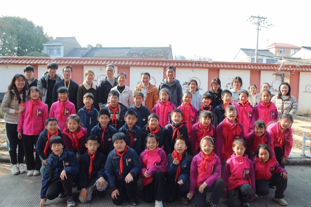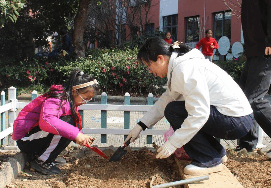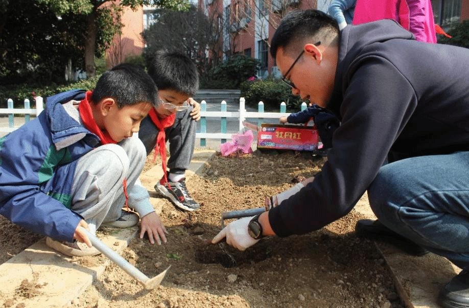 图1:学院师生志愿者与冯家小学“科技小苗”一同参与种植活动