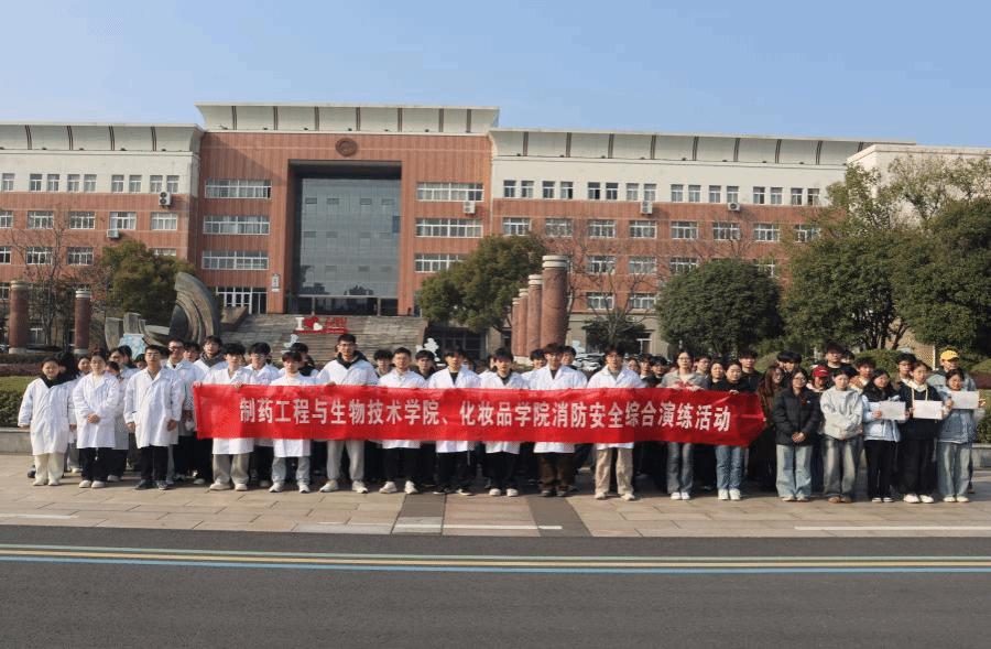 为切实增强广大同学消防安全意识,全面提升面对火警火灾突发事件的应急处置能力,3月19日下午,制药工程与生物技术学院、化妆品学院联合校安全保卫部,在鄞州校区2#实验楼及学校南门广场开展2026年度师生消防安全综合演练。学院师生代表共100余人参与本次演练,校安全保卫部全程提供专业指导。