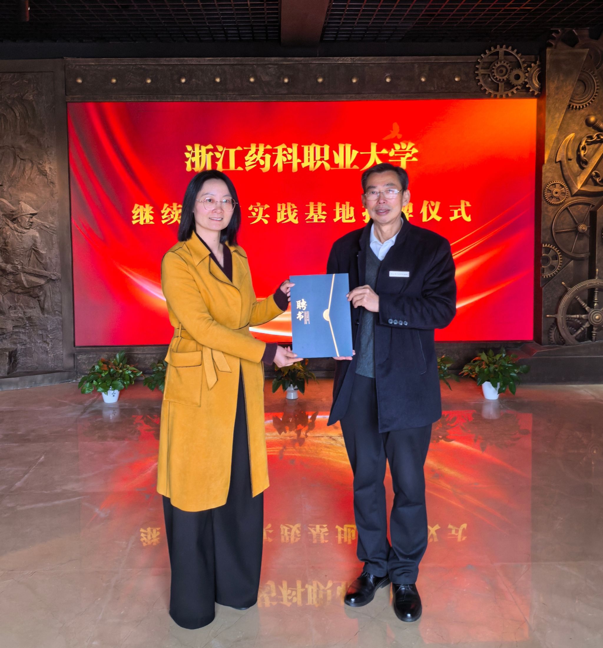 挂牌仪式上,沈忠华副校长代表学校为舟山鸦片战争纪念馆授予“浙江药科职业大学继续教育实践基地”牌匾。随后,学校人事处处长沈燕丽为舟山鸦片战争纪念馆馆长王和平颁发产业教授聘书,聘请其担任我校继续教育学院校外实践导师。