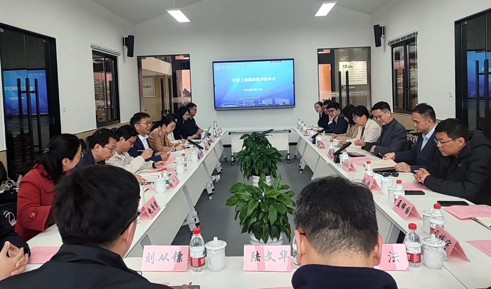 2026年3月31日上午,上海健康医学院副校长汤磊率教务处、教师教学发展中心、各二级学院及附属卫生学校等多位部门负责人莅临我校调研交流。我校党委委员、副校长沈忠华携教务处、人事处、数字与信息中心负责人,制药工程与生物技术学院、药商学院、医疗器械学院、食品学院教学副院长参会。