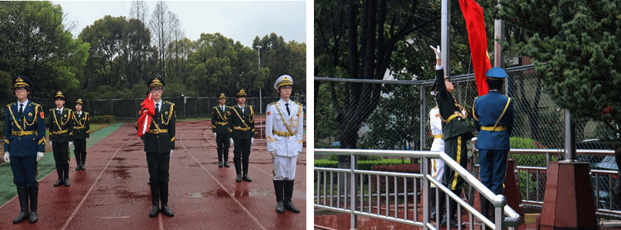 7时30分,升旗仪式正式开始。国旗护卫队的旗手们迈着铿锵有力的步伐,护送着鲜艳的五星红旗正步走向升旗台。伴随着雄壮嘹亮的《义勇军进行曲》,五星红旗冉冉升起,在晨光中迎风飘扬。全体师生庄严肃立,向国旗行注目礼,齐声高唱国歌,以满腔热忱表达对祖国的无限热爱与崇高敬意。