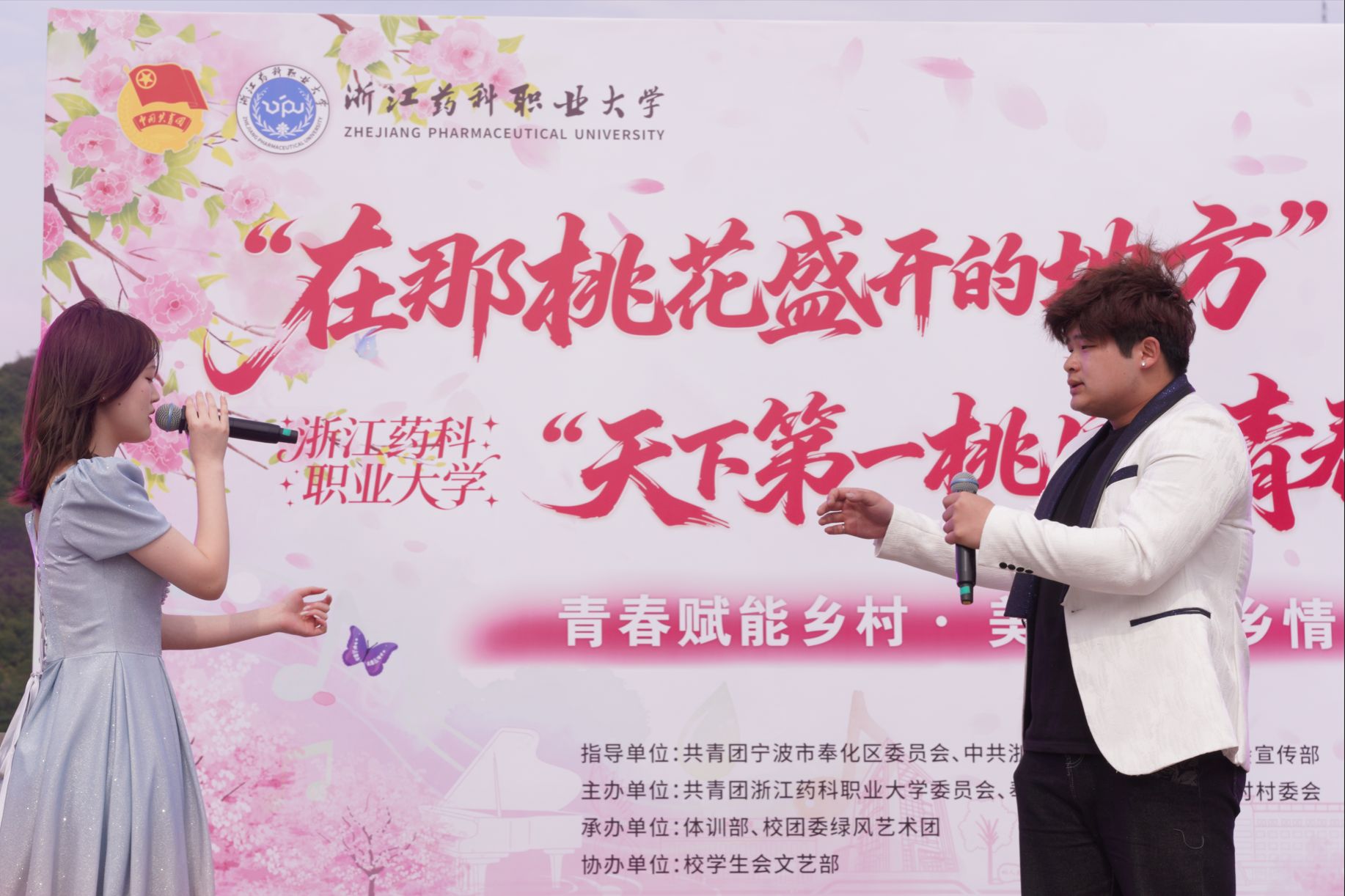 春风和畅,桃花灼灼。4月2日,在奉化“天下第一桃园”如云的粉霞中,一场跨越时空的青春歌会悠然唱响。此地正是经典歌曲《在那桃花盛开的地方》的灵感原乡——数十年前,奉化籍战士对故乡桃花的思念,经艺术提炼,化作传唱大江南北的动人旋律,深情歌颂了那一代人的奉献与坚守。而今,在共青团宁波市奉化区委员会、学校宣传部的指导下,由校团委携手奉化区萧王庙街道共同主办的“行走的美育课堂:重返桃花盛开的地方”活动在此举行。浙药大学子踏歌入桃林,以一场“老歌新唱、青春接力”的歌会,重返“歌声原乡”,致敬经典,对话乡土,标志着校地融合文化品牌“浙里桃缘”的破土新生。