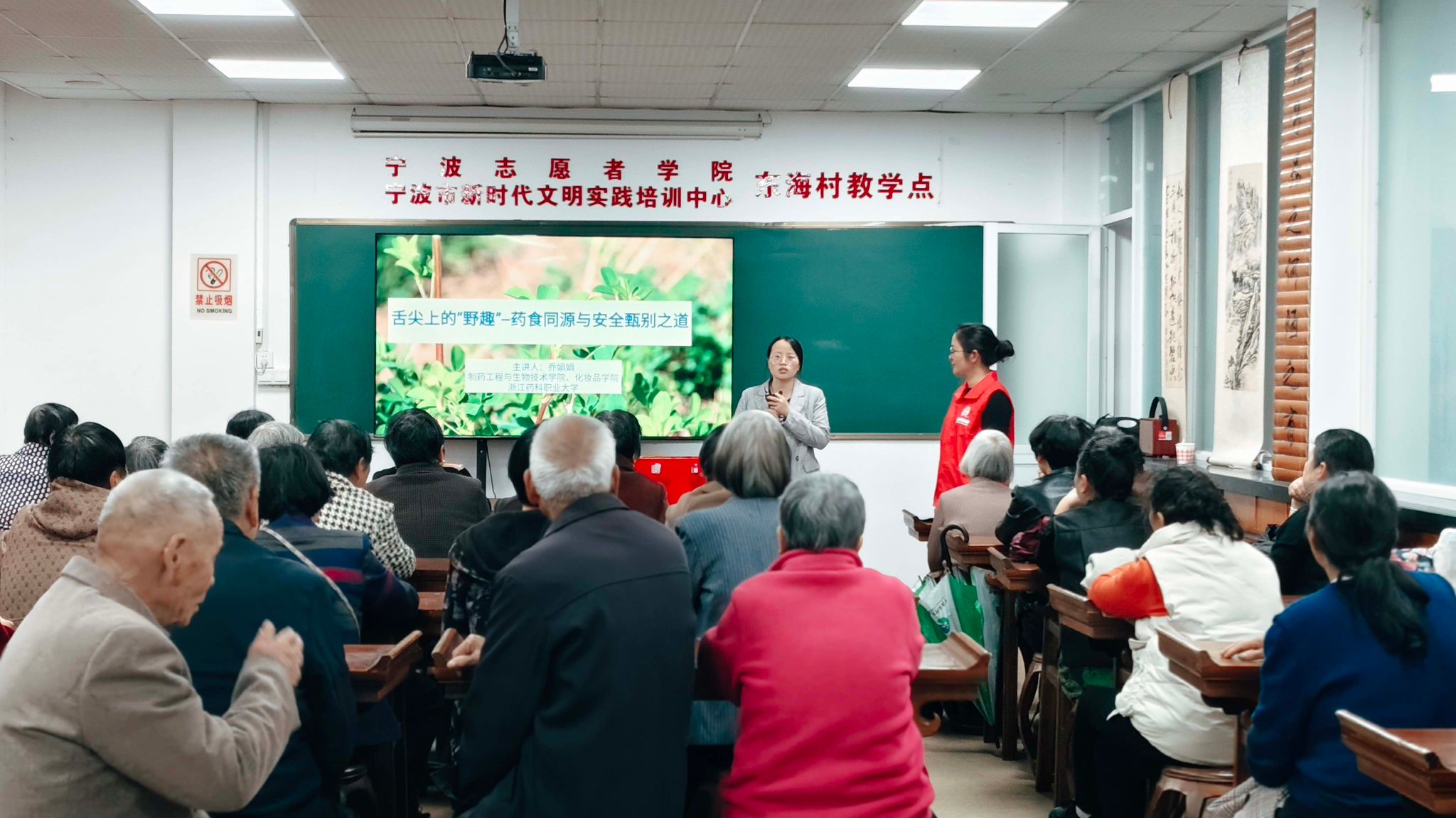 4月22日下午,“舌尖上的‘野’趣——药食同源与安全甄别之道”专题课程在慈溪市东海村的老年大学举行,百来位老年人认真听课。这是浙江药科职业大学制药工程与生物技术学院“药管家”团队入村开展志愿服务的日常,一批批“懂药的年轻人”在专业老师的带领下奔赴乡村,用专业反哺乡土,把用药安全健康服务带进村民家里,用精准入户服务走进村民心里。
