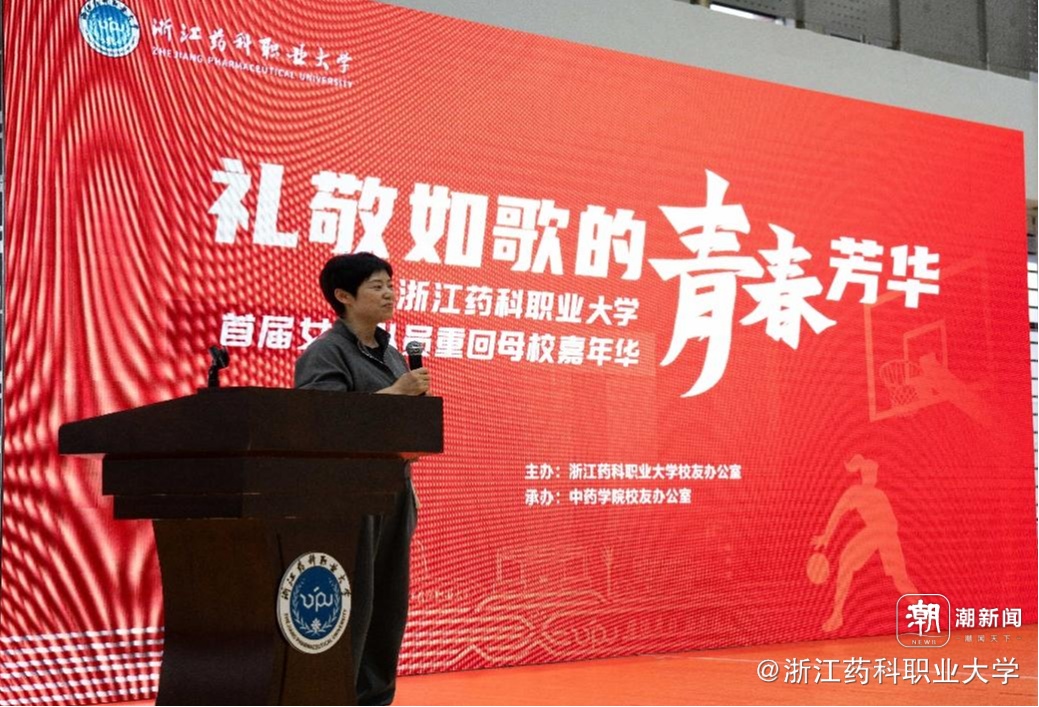在女篮校友联谊活动上,校党委副书记韩忠培发表了诚挚致辞:“浙药大的建设与发展,离不开广大校友关心支持和积极参与。正是全体浙药人戮力同心,我们才实现了跨越式发展目标。迈入新阶段,衷心希望广大校友一如既往地关心母校、支持母校,一起共画母校与校友发展的‘同心圆’。”