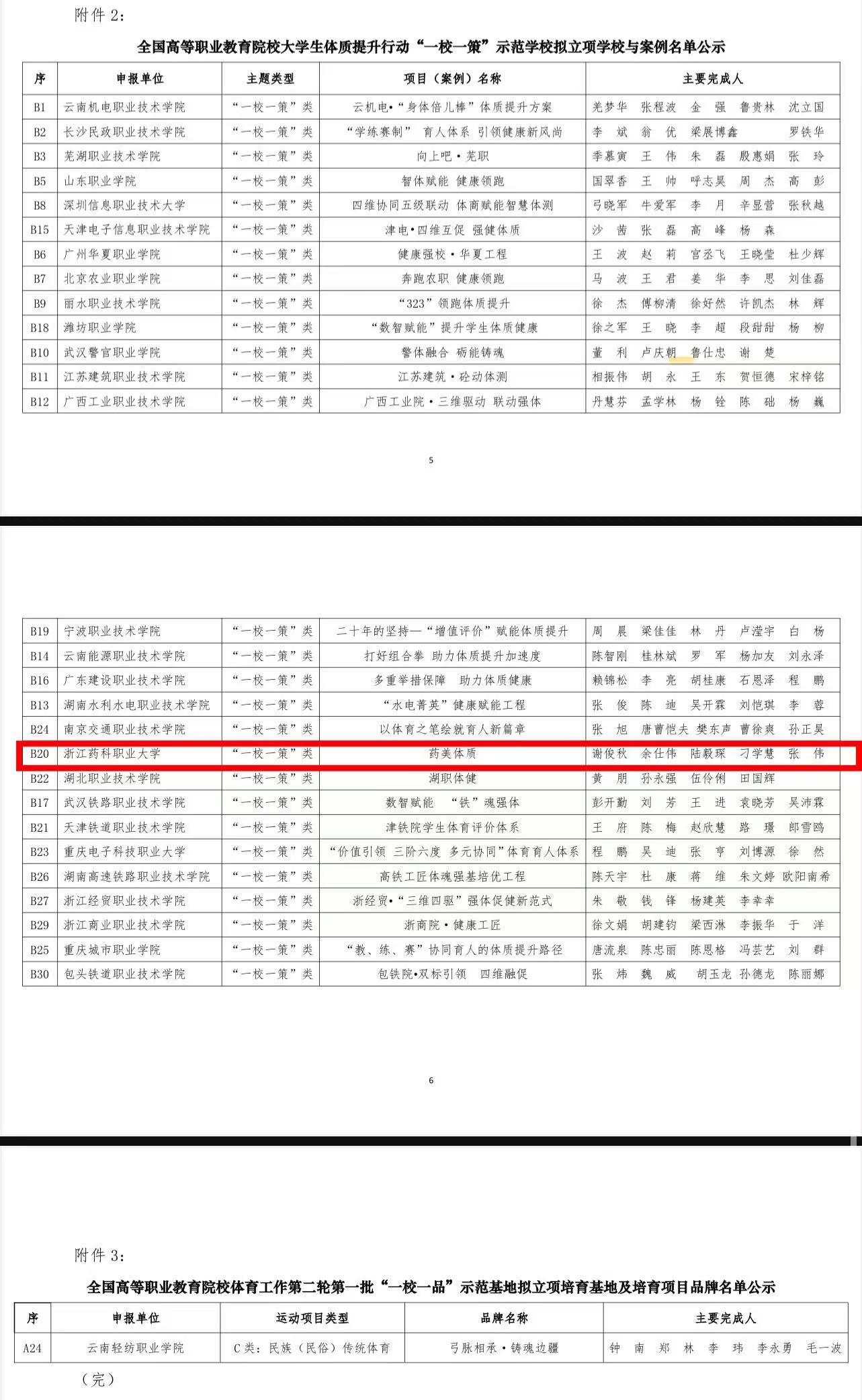 近日传来喜讯,浙江药科职业大学体训部申报的“药美体质”项目,经体训部教师们群策群力、齐心协力地准备,前期视频与材料的精心整理,并通过暑期现场答辩环节的激烈角逐,成功入选中国学生体育联合会高等职业教育院校工作委员会组织的“全国高等职业院校体育工作大学生体质提升行动“一校一策”示范学校”,这一荣誉的获得,标志着我校在探索具有专业特色的体育育人模式上取得了官方的认可,是学校体育工作发展历程中的重要里程碑。