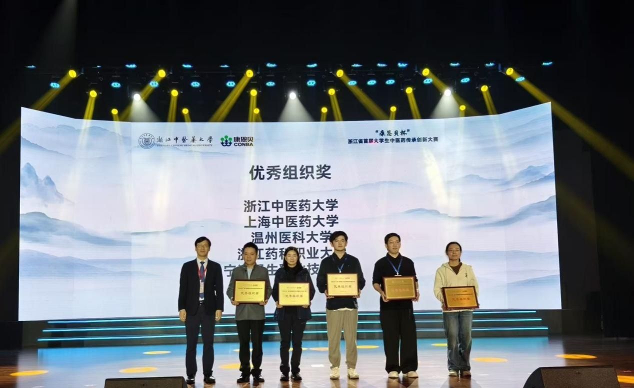 11月7日至8日,“康恩贝杯”浙江省首届大学生中医药传承创新大赛在浙江中医药大学成功举办。本届大赛由浙江省大学生科技竞赛委员会主办、浙江中医药大学承办,是全省中医药类专业学生展示才能、交流技艺的重要平台。经初复赛一路过关斩将,我校共有10支队伍脱颖而出,分别入围中药鉴定技能(2支)、康复治疗技能(3支)及中医药创新转化(5支)三个赛道的决赛。经过两天激烈角逐,我校学子发挥出色,共斩获中药鉴定技能金奖2项、中医药创新转化金奖1项银奖4项、康复治疗技能铜奖3项,学校荣获优秀组织奖,在全省众多本科院校中表现亮眼,彰显了我校在中医药教育领域的扎实根基与创新实力。