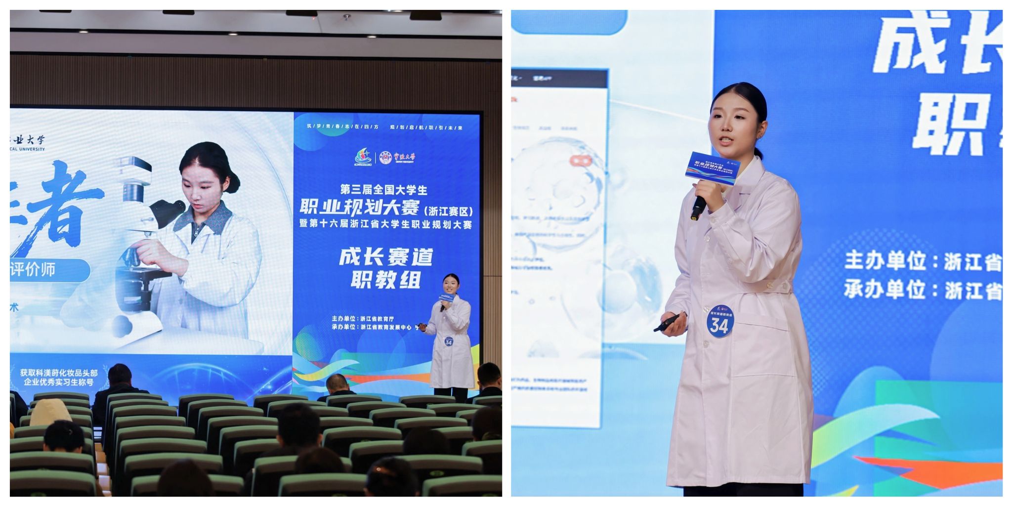 本次大赛中,制药工程与生物技术学院、化妆品学院朱滢睿同学以“化妆品功效评价师”为职业目标,凭借清晰的职业发展路径、详实的实践成果与深厚的专业素养,生动展现了新时代浙药学子立足行业产业特色、锚定专业细分领域、服务产业高质量发展的责任与担当,最终在成长赛道的激烈角逐中脱颖而出,成功摘得金奖。成绩背后凝聚了全校师生的心血,比赛从院赛、校赛一路到省赛舞台,校领导们始终倾注关心关怀,通过不同的形式为比赛提供指导和帮助,各学院广泛发动、全程发力推动比赛,充分展示了学校上下一盘棋、合力促育人的良好风貌。