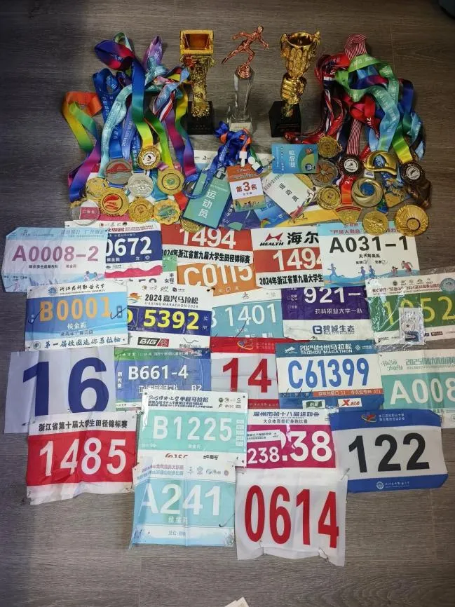带着这份懵懂的信心,她进入浙药后,在大一时选修了体训部王德磊老师的课,恰逢学校筹建长跑队。凭着对跑步悄然萌生的兴趣,零基础的她毅然加入。“那时连配速、步频都不懂,压力真的很大。”但在王德磊老师和李子成老师的悉心指导,以及队友们的温暖鼓励下,她一步步跑进了长跑的世界。