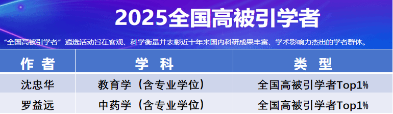 2026-01-29近日,作为全球最大的中文文献数据库和知识服务平台之一,中国知网(中国科学文献计量评价研究中心)发布了“2025年全国高被引学者”名单,我校沈忠华教授、罗益远副教授成功入选“2025年中国知网高被引学者TOP 1%”,其中沈忠华教授是继2024年首次入选后,再度蝉联“2025中国知网高被引学者Top1%”榜单。据悉,“2025全国高被引学者TOP1%”需满足:近十年发文的作者总PCSI位于初选作者范围的TOP1%(共有学者3万人,基线值为31....