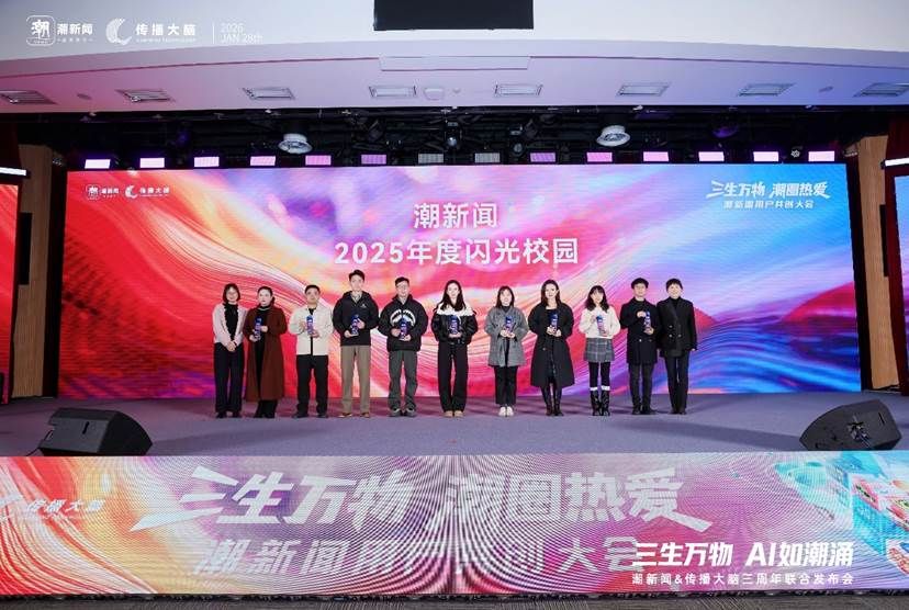 2026-01-301月28日,“三生万物,潮圈热爱”潮新闻用户共创大会在浙江日报社举行。我校凭借过去一年在潮新闻平台的积极发声、优质内容输出以及广泛正向的社会影响力,成功获评“2025年度闪光校园”优秀创作集体奖荣誉称号,全省共10所高校获评。这一奖项不仅是对学校宣传思想文化工作成效的肯定,更是对我校办学成果与社会形象的充分认可,这也是我校首次获评该殊荣。据悉,2025年我校在潮鸣号平台累计发布学校各类新闻达268篇,系统、生...